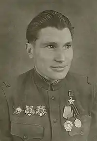 - На момент представления к званию Героя Советского Союза — старший лейтенант.