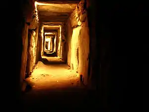 Правая ниша — более крупная по размеру и изящнее декорирована изображениями мегалитического искусства, чем другие ниши; такое выделение одной из ниш типично для ирландских коридорных могильников подобного типа, однако причина подобного выделения непонятна. Западный коридор заканчивается в прямоугольной комнате, отделённой от самого коридора камнем-перемычкой. В данной комнате, по-видимому, также имелся камень с углублением («камень-бассейн»), позднее вынесенный оттуда; в настоящее время он находится далее по коридору.