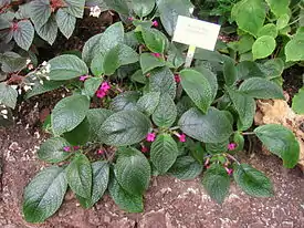 - N. lynchii[3], стройное, ветвящееся, многолетнее травянистое растение с листьями овально-ланцетными зубчатыми, с верхней стороны окрашенными от темно-зелёного до пурпурового, с нижней — красно-пурпуровыми, 12 см длиной. Цветет летом желтыми, снаружи опушёнными, с пурпуровым оттенением, цветками, появляющимися из пазух листьев в малоцветковом соцветии, по 3-4 цветка. Высота растения — 60 см, ширина — 30 см. Родом из Колумбии.