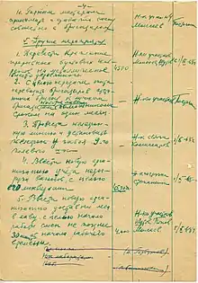 Черновик шахтной документации Баньковского В. И. Из плана Лаборатории Научной организации труда шахты «Северо-Гундоровская» № 3 треста «Гундоровуголь» (СССР), 1968 год.Пример мероприятий плана лаборатории НОТ шахты «Северо-Гундоровская» № 3 треста «Гундоровуголь» (СССР) с рекомендациями Донецкого (Ростовская область) и Шахтинского научно-исследовательских институтов, с учётом материалов заседаний шахтного совета НОТ и предложений рабочих[2]: