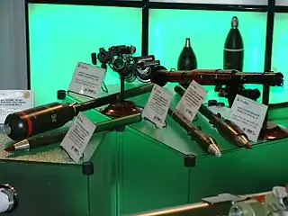 - взрывные устройства для гранатомётных выстрелов: ВУ 7В20 для ПГ-29В; для неуправляемых авиационных ракет: В-5КП, У-402 для С-5, С-8, С-13, С-24; для авиабомб: АВУ-529, АВУ-581 с устройством УП-581, У-563; УР-730, УЗ-732, АВ-733 предназначены для бетонобойной авиабомбы БЕТАБ-20, применяемой в составе кассеты РБК-500; для крылатых ракет: ЭМВУ-506 для К-10С, ЭМВУ-515 для Д-2М, ЭМВУ-548 для Д-7У, АВ-522 для П-15У, 3В-80 «Москит», 3В-54Э для 3М-54Э «Калибр»;