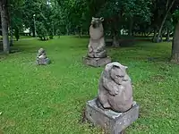 Скульптурная группа «Три медведя» на лужайке территории Центра