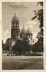 - Кафедральный собор во имя Григория Великого (Сурб-Лусаворич). Территория первого храма Сурб-Лусаворич находилась на юг от территории современного Нахичеванского рынка. Кафедральный собор был заложен в 1783 году и был освящён в 1807 году. Здание было построено в классическом стиле с преобладанием дорического ордера в архитектуре. В начале 1930-х годов кафедральный собор был закрыт. Звонницу разобрали, а в самом здании церкви стала функционировать детская техническая станция. В 1942 году во время оккупации богослужения возобновились и велись до конца 1950-х годов. Затем собор был уничтожен, и в 1970-х годах здесь уже было здание Дворца культуры завода Красный Аксай.