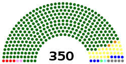 Национальная ассамблея однопалатная и состоит из 350 депутатов избираемых прямым, тайным и равным голосованием по мажоритарной системе на 5 лет, 50[k 1] мест в которой резервируется для женщин, избираемых с учётом партийной принадлежности в соответствии с полученной партией долей голосов[1][2][3][4].