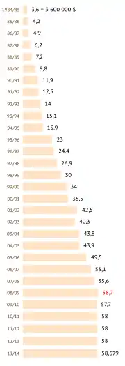 Тем не менее, к концу десятилетия прослеживалась тенденция к падению интереса по отношению к баскетболу со стороны общественности — слабая посещаемость и низкие телевизионные рейтинги не предвещали лиге светлого будущего, если бы не заново возродившаяся дуэль «Селтикс» и «Лейкерс»[68][69][70].