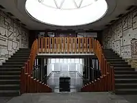 Фойе библиотеки используется для проведения различных культурных мероприятий. Его пол выложен разнообразной мозаикой из мраморного камня. А венчает его самый большой купол библиотеки, обеспечивая достаточное естественное освещение зала[11]