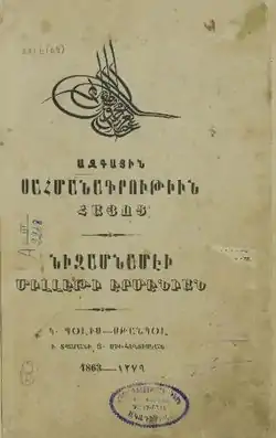 | осман. Nizâmnâme-i Millet-i Ermeniyân, نظامنامهٔ ملّت ارمنیان | |