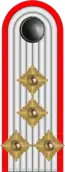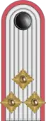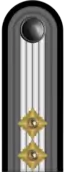 | Полковник (Oberst) | Подполковник (Oberstleutnant) | Майор (Major) | Капитан (Hauptmann) | Старший лейтенант (Oberleutnant) | Лейтенант (Leutnant) | Младший лейтенант (Unterleutnant) |