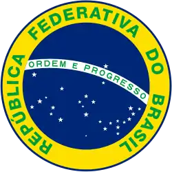 Национальная печать Бразилии представляет собой круг, внутри которого на фоне звезд расположена надпись: «Republica Federativo du Brasil», что в переводе означает «Федеративная республика Бразилия». Внутри круга изображена полоса с надписью «Ordem e progresso», что означает «Порядок и прогресс».