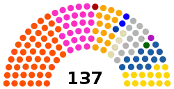 Члены Национального собрания избираются тремя способами. 15 депутатов избираются пропорциональным представительством по партийным спискам в общенациональном округе; 6 депутатов избираются избирателями-эквадорцами, живущими за границей (по два из Канады-США, Латинской Америки и Азии-Европы-Океании). Остальные 116 членов Национального собрания избираются по многомандатным округам путём пропорционального представительства по партийным спискам, при этом все места распределяются с использованием метода Вебстера — Сент-Лагю[4][5]. Члены Национального собрания в сумме ограничены двумя четырёхлетними сроками (не важно последовательными или с перерывом). В партийных списках существуют гендерные квоты, что означает чередование мужчин и женщин. Нет никаких квот для представительства национальных меньшинств[6].