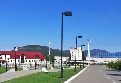 - лыжно-биатлонный стадион, включающий 16 сертифицированных FIS трасс, стрельбище, зрительские трибуны, вмещающие до 3000 человек;