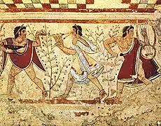 Фрагмент фрески «Музыканты» из гробницы Триклиния. Тарквиния, ок. 470 г. до н. э.