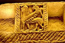 Барельеф сфинкса, серый туф (ненфро), архаическое этрусское искусство