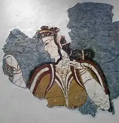 - Настенные фрески, в том числе так называемые «Весна», «Боксирующие дети», «Антилопы» и «Женщины, собирающие шафран»