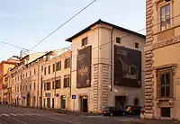 - Палаццо Массимо алле Терме. Дворец, расположенный рядом с бывшими термами Диоклетиана, был приобретён итальянским государством в 1981 году. В 1998 году большая часть помещений трёх этажей дворца выделена под постоянную экспозицию Национального музея Рима, в которой разместили шедевры римской скульптуры из музея в термах Диоклетиана. В нём экспонированы античные саркофаги, фрагменты фресок из раскопок виллы Ливии (супруги императора Августа) из Прима-Порта, мозаики с виллы Фарнезина, демонстрируются знаменитые шедевры античной скульптуры: «Статуя Диадоха», бронзовая фигура Кулачного бойца, реконструкции статуи Дискобола работы Мирона, лежащая фигура Гермафродита, мраморный алтарь из Остии, бюсты, статуи римских богов, богинь и императоров. В музее хранятся коллекции античных и средневековых монет и драгоценностей [5].