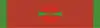 Орденская лента красного цвета с тонкими зелёными полосками по краям.