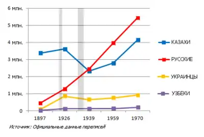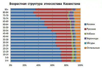 | казахи | 82,89% | 58,52 % | 37,84 % | 30,02 % | 32,39 % | 36,02 % | 39,69 % | 53,40 % | 63,07 % | 69,01 % |