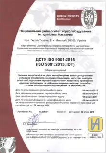 НУК им. адм. Макарова — единственное на Украине заведение высшего образования, которое осуществляет подготовку специалистов для судостроительного, кораблестроительного, машиностроительного, энергетического, морехозяйственного комплексов Украины и других стран мира по международным нормам и требованиям. Подтверждением этого является получение в 2014 г. международного и государственного сертификатов качества подготовки специалистов ISO 9001: 2008 и ДСТУ ISO 9001: 2009 от «Бюро Веритас Сертификейшн Украина». Общество ежегодно осуществляет наблюдательный аудит за функционированием системы управления качеством НУК, а в 2017 г. университет успешно прошёл сертификационный аудит на соответствие требованиям новой редакции стандарта ISO 9001: 2015, согласно которой НУК им. адм. Макарова получил сертификаты соответствия ISO 9001: 2015 за номером UA228700 и ДСТУ ISO 9001: 2015 за номером UA228701 со сроком действия до 8 февраля 2021 г.