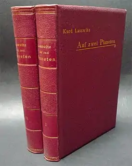 - Lasswitz K. Auf zwei Planeten : Roman in zwei Büchern : [нем.]. — Weimar : Emil Felber, 1897. — iv, 421, 545 S.
