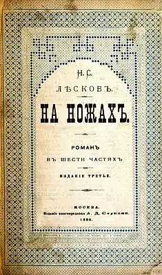 «На ножах» — антинигилистический роман Николая Лескова с авантюрно-уголовным сюжетом. Впервые опубликован в журнале «Русский вестник» № 10—12 за 1870 год, № 1—8, 10 за 1871 год. В ноябре 1871 года вышел отдельной книгой. В романе «бывшие революционеры становятся полицейскими агентами и чиновниками, ради денег хитроумно обманывая друг друга», а «нигилизм трактован как беспринципность, ставшая жизненной философией»[1].