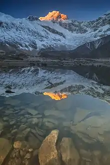 ![]() Нгади-Чули (в центре). Слева — Манаслу, справа — Гималчули | |