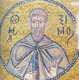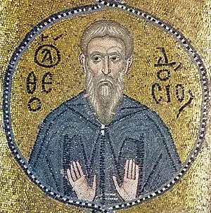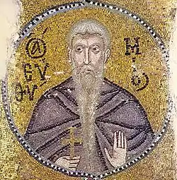Во внутреннем нартексе на столбах помещены медальоны с изображениями святых (главным образом это преподобные, то есть святые монахи, но есть и изображения воинов и пророков). Медальоны соединены в цепочки и являются древнейшим из сохранившихся примеров таких композиций среди монументальных мозаик.[14] Также впервые в византийском искусстве в руки святому из лика преподобных помещён свиток с текстом — им стал преподобный Ефрем Сирин.[22]