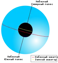 Небесный экватор — большой круг небесной сферы, плоскость которого перпендикулярна оси мира и проходит через центр небесной сферы. Небесный экватор делит небесную сферу на два полушария: северное и южное[1].