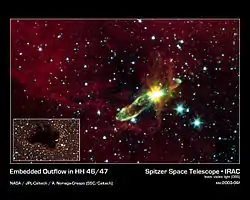 - Lee, Chin-Fei; Mundy, Lee G.; Reipurth, Bo et al. CO outflows from young stars: confronting the jet and wind models (англ.) // The Astrophysical Journal : journal. — IOP Publishing, 2000. — Vol. 542, no. 2. — P. 925—945. — doi:10.1086/317056. — .