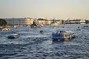 | Вид на устье Староладожского канала и на Неву | Нева в устье реки Ижоры | Нева в районе Большеохтинского моста | Вид на реку Нева с Дворцового моста | Излучина Невы с борта вертолёта |