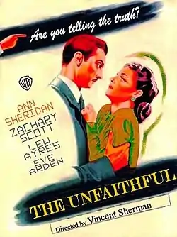 - T.M.P. 'The Unfaithful', Post-War Study Starring Ann Sheridan, Lew Ayres and Zachary Scott, Has Its Premiere at the Strand (англ.). The New York Times (28 июня 1947). Дата обращения: 5 февраля 2017.