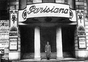 В 1913—1914 годах по проекту М. С. Лялевича во дворе дома был построен флигель для размещения кинотеатра «Паризиана» вместимостью 800 мест[16], который в 1914—1917 годах стал культовым местом для профессионалов кинематографии — искусствоведов и журналистов.[17] Кинотеатр был оборудован по последнему слову техники — в ложи были проведены телефоны, был устроен раскрывающийся потолок, превращающий кинотеатр в заведение под открытым небом.[18]