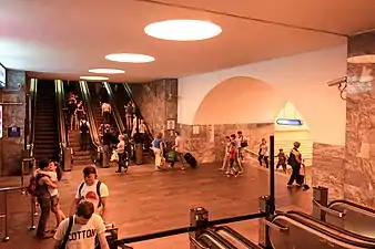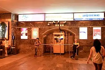 - Выход со станции представляет собой старейший в городе подземный переход.