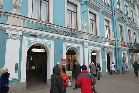 Невский проспект Первый вестибюль: Михайловская улица, Думская улица Второй вестибюль: набережная канала Грибоедова, Казанская площадь |