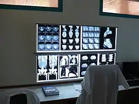 Негатоскоп — устройство, предназначенное для просмотра на просвет сухих и мокрых чёрно-белых радиографических снимков (рентгенограмм, томограмм и т. д.) в медицине и технике. Представляет собой устройство со светящимся экраном, на который накладывается радиографический снимок. Яркость экрана достаточно высока и позволяет просветить снимки с большой оптической плотностью.