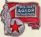 26 декабря 1919 года в Советской России Советом народных комиссаров был принят Декрет «О ликвидации безграмотности среди населения РСФСР», обеспечивающий ликвидацию неграмотности, и всё население республики в возрасте от 8 до 50 лет, не умеющее читать или писать, было обязано обучаться грамоте на родном или русском языке (по желанию). В июне 1920 года совнаркомом был принят декрет об учреждении Всероссийской чрезвычайной комиссии по ликвидации безграмотности (ВЧК ликбез), постановления которой имели обязательный характер. Заведовал делами этой комиссии нарком просвещения Анатолий Луначарский[3].