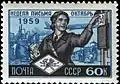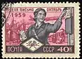 Ниже в хронологическом порядке приведены изображения всех 16 почтовых марок СССР, выпущенных по случаю этого события и запечатливших письма и средства их доставки. Под каждым изображением указаны год выпуска, художник и каталожный номер марки.