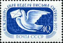 - Примеры филателистических материалов в ознаменование Международной недели письма