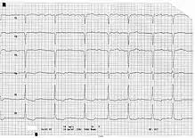 - ЭКГ: признаки гипертрофии и дилатации левого желудочка, признаки перегрузки левого желудочка и относительной коронарной недостаточности (снижение сегмента S-T и отрицательный зубец T в I и II стандартных и левых грудных отведениях, может наблюдаться блокада левой ножки пучка Гиса;