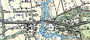 Согласно топографической карте 1938 года посёлок Нежново насчитывал 14 дворов, в посёлке была своя школа, силосная башня и водяная мельница.