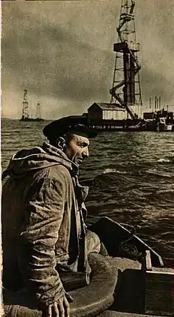 ![]() Ага Нейматулла на пути к своей буровой. 1950 год | |