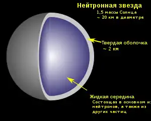 Нейтро́нная звезда́ — космическое тело, являющееся одним из возможных результатов эволюции звёзд, состоящее, в основном, из нейтронной сердцевины, покрытой сравнительно тонкой (около 1 км) корой вещества в виде тяжёлых атомных ядер и электронов.