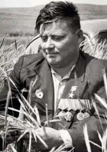 - 27.03.1954 — за достижение высоких показателей на уборке и обмолоте зерновых культур (за 20 рабочих дней на комбане «Сталинец-6» намолотил 10 054 центнера зерновых)