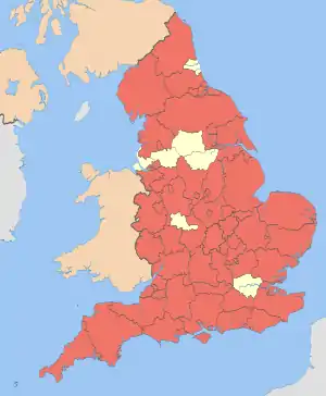 До 1974 года региональное управление в Англии было разделено между городскими округами (наиболее крупные города страны) и административными округами, которые делились на самоуправляемые районы городов, городские округа и сельские округа. Закон о региональном управлении 1972 года разделил всю территорию Англии, кроме Лондона и ещё 6 крупных городских агломераций, на 39 неметропольных графств, каждое из которых включало в себя от двух до четырнадцати неметропольных районов.[1]