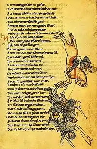 Та же цель и сходная точка зрения на крестьянство выражается и в нижненемецком рассказе о Тиле Уленшпигеле, написанном в 1483 г. В конце XV столетия появляется нижненемецкая переделка нидерландской поэмы о Рейнеке-лисе «Рейнгарт», вполне пришедшаяся по вкусу всей немецкой публике (верхненемецкая переделка с французского, сделана Генрихом Глейснером ещё в XII веке. В то же время не забывалась и старая поэзия; в XV в. было немало её любителей и собирателей; в первой половине его переработаны поэмы об Ортните, Хугдитрихе и Вольфдитрихе, короле Лаурине, под именем «Книги о героях» (Хугдитрих и Вольфдитрих; 1-е изд. без года, 2-е 1491 г., потом 1509, 1545, 1560, 1590 и т. д.); ок. 1472 г. площадной певец Каспар фон дер Рён (нем. Kaspar von der Rhön) из Мюннерштадта ещё раз переделал (очень безвкусно) те же сюжеты, вместе с другими.