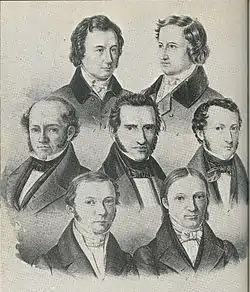 Главы школы — Бёрне (1786—1837), Гейне, Гуцков (1811—1878) и Георг Бюхнер (1813—1837) — несмотря на различие в характере дарований, все были великими публицистами, только в разных формах. Генрих Лаубе (1806—1884) был талант посредственный, склонявшийся к индустриализму; с большей честью для школы к ней причисляют серьёзного учёного и даровитого лирика Гофмана фон Фаллерслебена. Приблизительно до 1840 г. на первом плане стоит проза, а после, до 1848 г. — политическая лирика. Самый крупный талант между лириками младшего, сравнительно с Гейне поколения, завлечённый положением вещей в политическую борьбу — Фердинанд Фрейлиграт (1810—1876), представитель так называемой объективной лирики. Одно время слава его была заглушена громом имени Гервега, но дарование последнего оказалось слишком односторонним, и Фрейлиграт так и оставался царём тенденциозной поэзии.