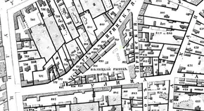 - Улица Фридриха Энгельса, 25, строение 3 — здание торговых лавок 1863 года постройки. Исторически дом являлся дноэтажным, имел большие арочные окна и проездную арку. Фасад был декорирован в стиле позднего классицизма. Впоследствии часть витрин заложили, на месте проездной арки образовали вход, а в начале XX века дом разделили на два этажа[3][11].