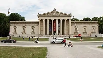 Проект публичной галереи воплотился в здании Глиптотеки, спроектированном архитектором Лео фон Кленце. Зодчий выступал непреклонным пропагандистом неогреческого стиля и писал: «Была и есть только одна архитектура, и всегда будет только одна архитектура, а именно та, которая воплотила своё совершенство в годы становления греческой цивилизации. То, что греки открыли эту совершенную архитектуру, было просто совпадением или даже божественной судьбой, но она принадлежит в той же мере Германии, как и Греции»[38]. Кленце, учившийся в Берлине у Давида Жилли и в своё время примкнувший к движению Прусского эллинизма, стал основателем ещё одной разновидности этого направления — Мюнхенского классицизма (нем. Münchener Klassizismus)[34].