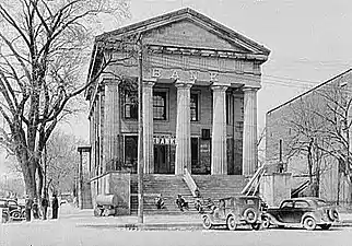 Книги о древнеримских археологических памятниках появились в США после начала Американской революции. Данным направлением в архитектуре заинтересовался Томас Джефферсон, способствовавший его зарождению и распространению в стране. Политик рассматривал данный стиль, как способ олицетворения «новой республики», который бы демонстрировал независимость Штатов от Англии. Вместо заимствований из английской архитектуры, предполагалась брать в качестве источника напрямую образцы римской архитектуры. Таким образом возник американский вариант неоклассицизма[30].