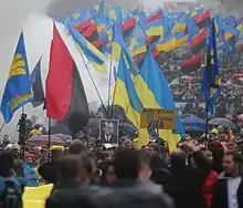 В Евромайдане также участвовали представители праворадикальных партий. Несмотря на своё относительно небольшое количество, они проявили высокий уровень активности и стали видимым меньшинством в общем количестве протестующих[21]. Было отмечено, что способность правых экстремистов быстро мобилизовать свою сеть сторонников стала критическим фактором силового противостояния, но им не удалось его задействовать в избирательном процессе — например, на выборах в мае 2014 года[22].