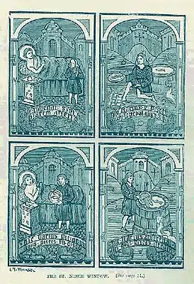 Два из пятнадцати витражей в церкви св. Неота в Корнуолле изображают святого, один из них состоит из сцен из жизни святого.